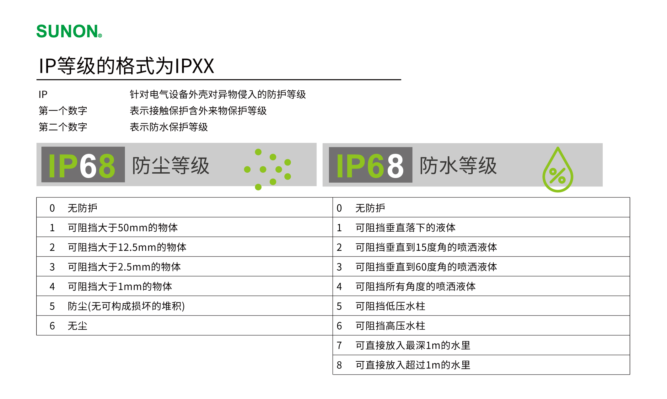 SUNON IP防護(hù)風(fēng)扇依室內(nèi)戶外應(yīng)用環(huán)境的需求推出標(biāo)準(zhǔn)Level 1-4的保護(hù)等級設(shè)計服務(wù),采用先進(jìn)IP技術(shù)和高質(zhì)量防護(hù)材料,為各式應(yīng)用系統(tǒng)規(guī)劃優(yōu)化IP風(fēng)扇防護(hù)組合,且符合國際測試標(biāo)準(zhǔn)(防水防塵IEC60525 / 防鹽霧ASTM B117),嚴(yán)格把關(guān)高質(zhì)量的產(chǎn)品防護(hù)設(shè)計,確保SUNON IP風(fēng)扇系列具備最佳的防水防塵耐鹽霧性,除了能應(yīng)用在戶外應(yīng)用產(chǎn)業(yè)上,也能被應(yīng)用在其他需要面對嚴(yán)苛環(huán)境挑戰(zhàn)下,和全天候不間斷的長時間運作需求的設(shè)備系統(tǒng),目前已成功應(yīng)用在多類的產(chǎn)業(yè),提供高效散熱和長效使用壽命。
